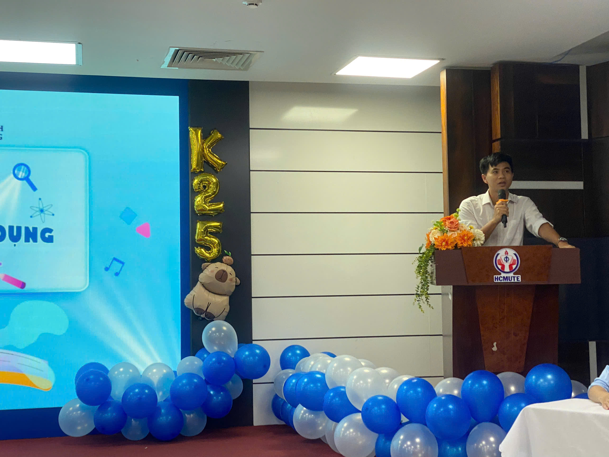 Trong buổi lễ, TS. Phan Gia Anh Vũ – Trưởng khoa KHUD, cùng các Trưởng bộ môn Công nghệ vật liệu và Vật lý kỹ thuật đã có những lời phát biểu chào mừng, chia sẻ định hướng học tập, nghiên cứu cũng như truyền cảm hứng cho tân sinh viên trên hành trình sắp tới.