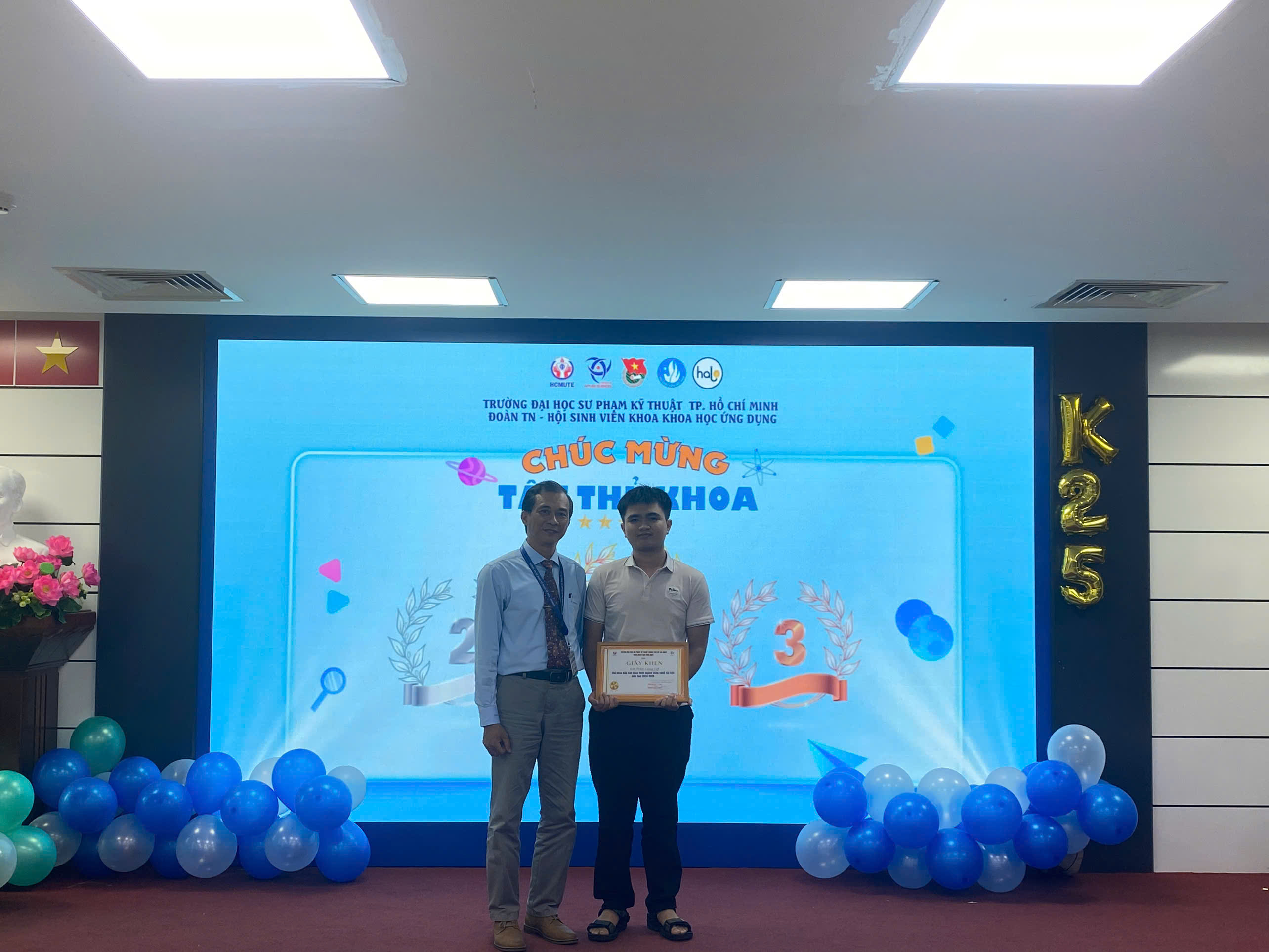 Sáng ngày 11/09/2025 tại Hội trường phòng họp 2 (lầu 6) Khoa Khoa học Ứng dụng – Trường Đại học Sư phạm Kỹ thuật thành phố Hồ Chí Minh đã long trọng tổ chức “Lễ nhập môn tân sinh viên Khoa khoa học ứng dụng - Khóa 2025”.