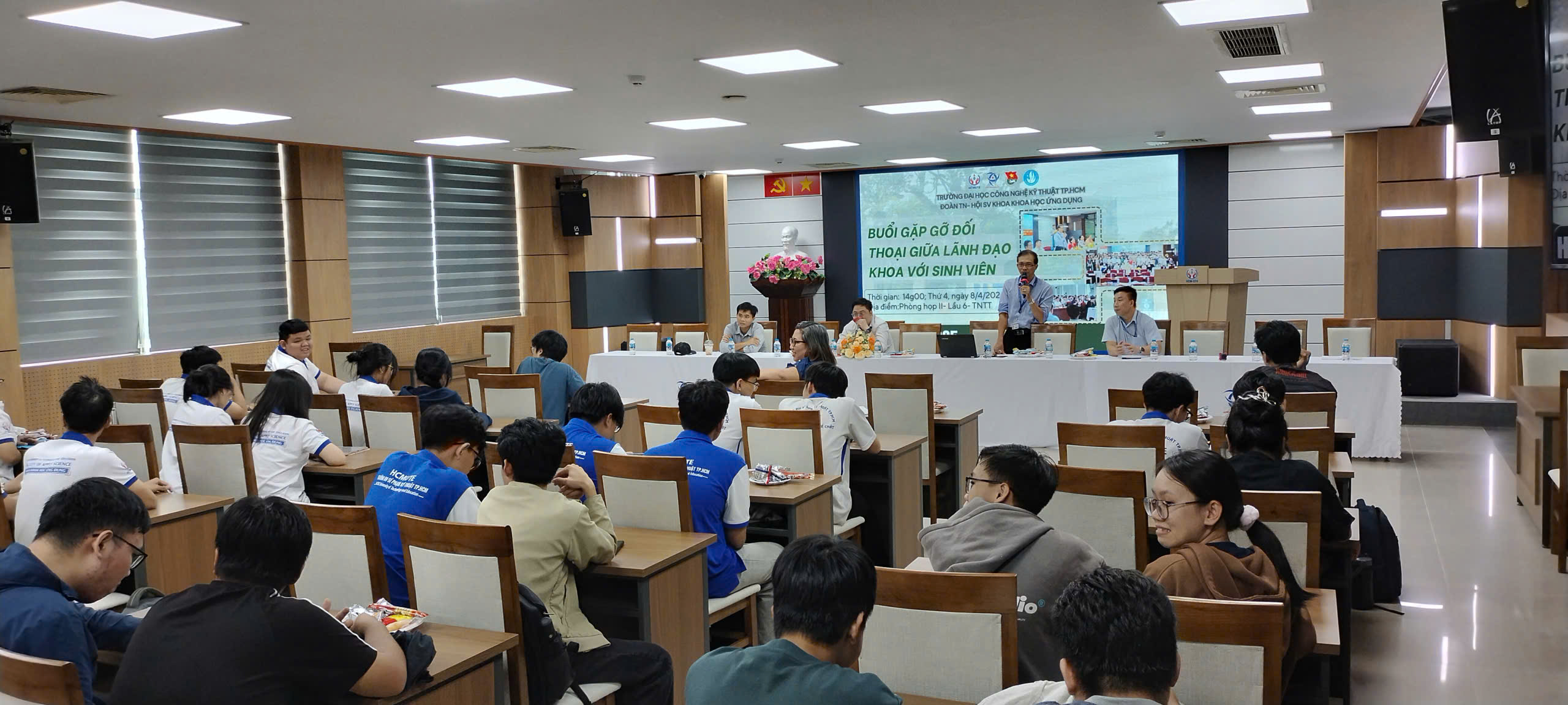 Vào chiều ngày 08/4/2026, tại Phòng Họp 2, trường Đại học Công nghệ Kỹ thuật Thành phố Hồ Chí Minh, Khoa Khoa học Ứng dụng đã tổ chức buổi gặp gỡ, đối thoại trực tiếp giữa Ban Chủ nhiệm Khoa, giảng viên và sinh viên các khóa K22, K23, K24 cùng sinh viên các khóa kéo dài thuộc hai ngành Công nghệ vật liệu và Vật lý kỹ thuật.